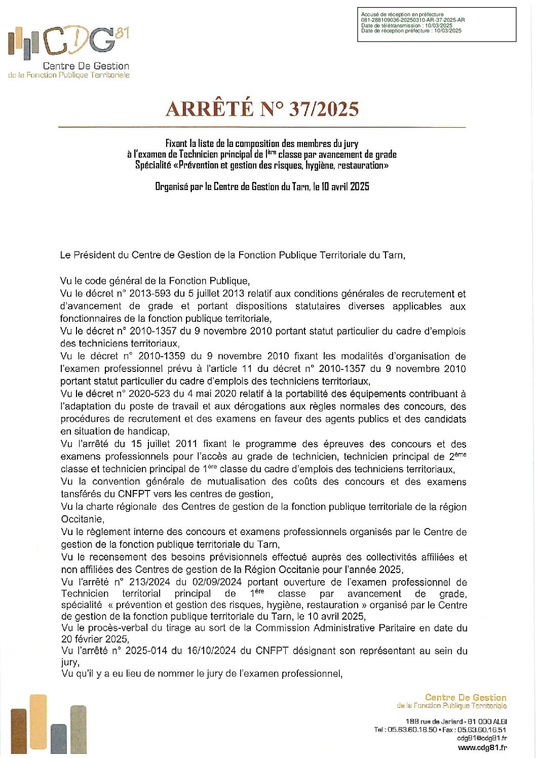 Voir l'image agrandie AR-37-2025-composition jury ex tech pl 1ere cl AG session 2025 Arrêté : composition des membres du jury examen tech pl 1ère classe AG (session 2025) Type de fichier : pdf File Size: 668 Ko Catégories: 2025 Balises : examen technicien principal, jury, session 2025,2025 Par Thomas|2025-12-09T17:58:39+01:0009/12/2025|Commentaires fermés sur AR-37-2025-composition jury ex tech pl 1ere cl AG session 2025 Share This Story, Choose Your Platform! FacebookXRedditLinkedInWhatsAppTelegramTumblrPinterestVkXingEmail À propos de l'auteur : Thomas