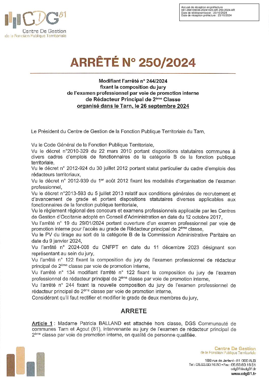Voir l'image agrandie Arrêté 250 du 21/10/2024 modifiant composition jury Arrêté n°250 du 21/10/2024 maj composition du jury Type de fichier : pdf File Size: 492 Ko Catégories: 2024 Balises : 2024,promotion interne,PI, arrêté, rédacteur principal, rédacteur principal 2ème classe Par Thomas|2025-12-09T17:56:09+01:0009/12/2025|Commentaires fermés sur Arrêté 250 du 21/10/2024 modifiant composition jury Share This Story, Choose Your Platform! FacebookXRedditLinkedInWhatsAppTelegramTumblrPinterestVkXingEmail À propos de l'auteur : Thomas
