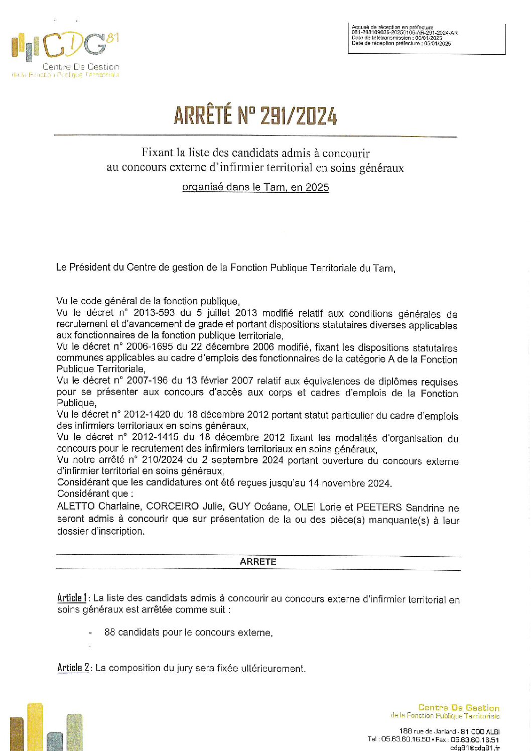 Voir l'image agrandie Arrêté : candidats à concourir concours infirmier SG Arrêté : liste des candidats admis à concourir concours infirmier SG (2025) Type de fichier : pdf File Size: 699 Ko Catégories: 2025 Balises : 2025, concours infirmier en soins généraux, infirmier Par Thomas|2025-12-09T17:57:05+01:0009/12/2025|Commentaires fermés sur Arrêté : candidats à concourir concours infirmier SG Share This Story, Choose Your Platform! FacebookXRedditLinkedInWhatsAppTelegramTumblrPinterestVkXingEmail À propos de l'auteur : Thomas