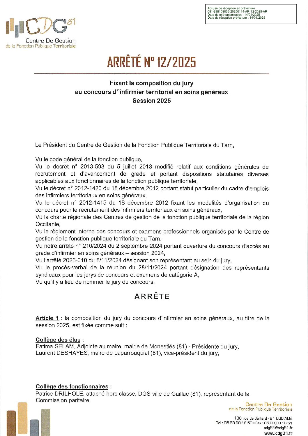 Voir l'image agrandie Arrêté : composition jury concours infirmier en soins généraux (session 2025) Arrêté : composition jury concours infirmier en soins généraux (session 2025) Type de fichier : pdf File Size: 457 Ko Catégories: 2025 Balises : 2025, infirmier, infirmier SG, session 2025 Par Thomas|2025-12-09T17:57:08+01:0009/12/2025|Commentaires fermés sur Arrêté : composition jury concours infirmier en soins généraux (session 2025) Share This Story, Choose Your Platform! FacebookXRedditLinkedInWhatsAppTelegramTumblrPinterestVkXingEmail À propos de l'auteur : Thomas