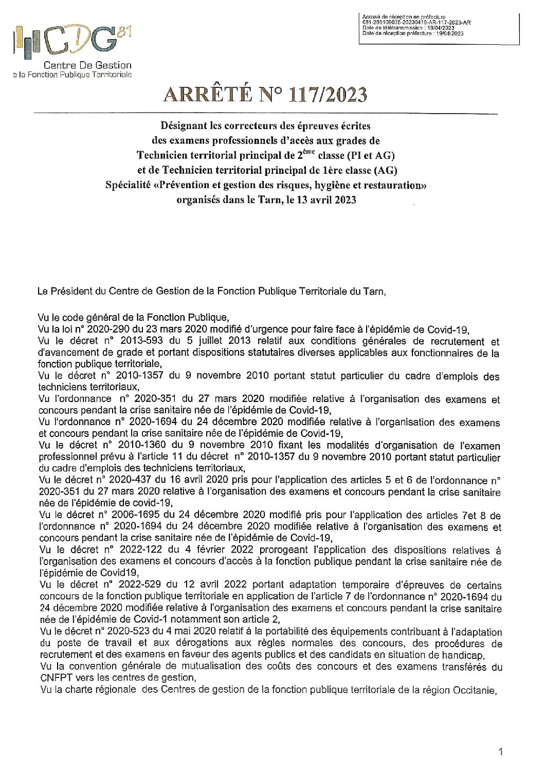 2023, arrêté, correcteurs, examen professionnel, technicien principal