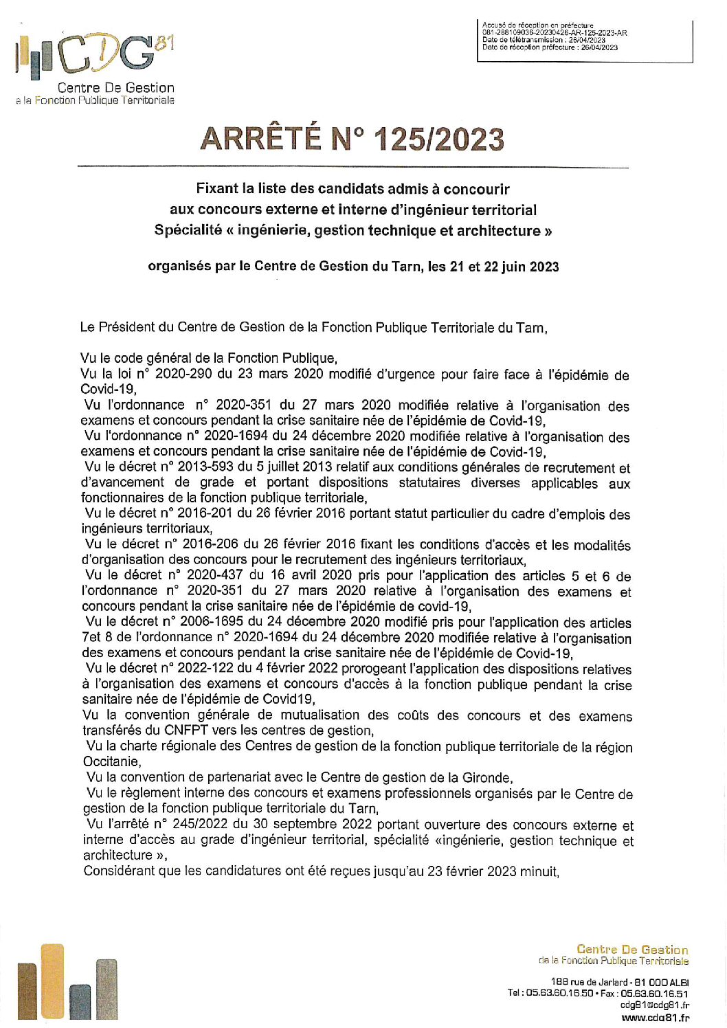 Voir l'image agrandie Arrêté : jury concours d’ingénieur territorial, spécialité IGTA (session 2023) Arrêté : jury concours d’ingénieur territorial, spécialité IGTA (session 2023) Type de fichier : pdf File Size: 1 Mo Catégories: 2023 Balises : 2023, IGTA, ingénierie gestion technique et architecture, ingénieur, jury Par Thomas|2025-12-09T17:53:15+01:0009/12/2025|Commentaires fermés sur Arrêté : jury concours d’ingénieur territorial, spécialité IGTA (session 2023) Share This Story, Choose Your Platform! FacebookXRedditLinkedInWhatsAppTelegramTumblrPinterestVkXingEmail À propos de l'auteur : Thomas
