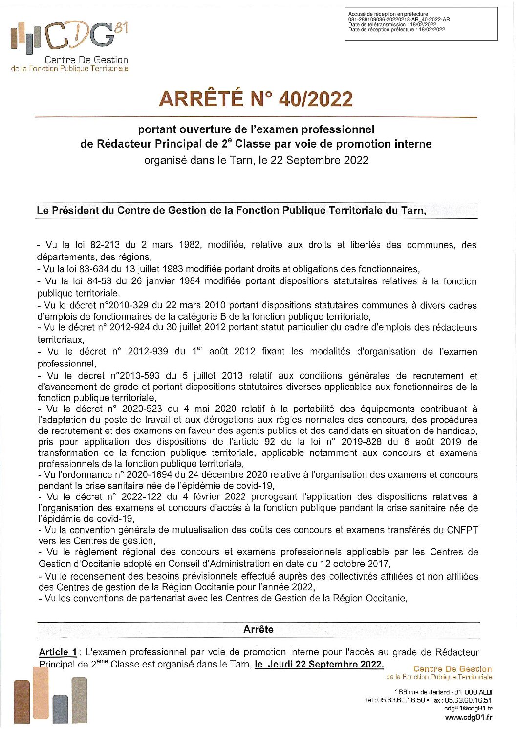 Voir l'image agrandie Arrêté : ouverture examen rédacteur principal 2e classe PI (2022) Arrêté : ouverture examen rédacteur principal 2e classe PI (2022) Type de fichier : pdf File Size: 1 016 Ko Catégories: 2022 Balises : 2022, arrêté, examen, PI, promotion interne, rédacteur, session 2022 Par Thomas|2025-12-09T17:52:19+01:0009/12/2025|Commentaires fermés sur Arrêté : ouverture examen rédacteur principal 2e classe PI (2022) Share This Story, Choose Your Platform! FacebookXRedditLinkedInWhatsAppTelegramTumblrPinterestVkXingEmail À propos de l'auteur : Thomas