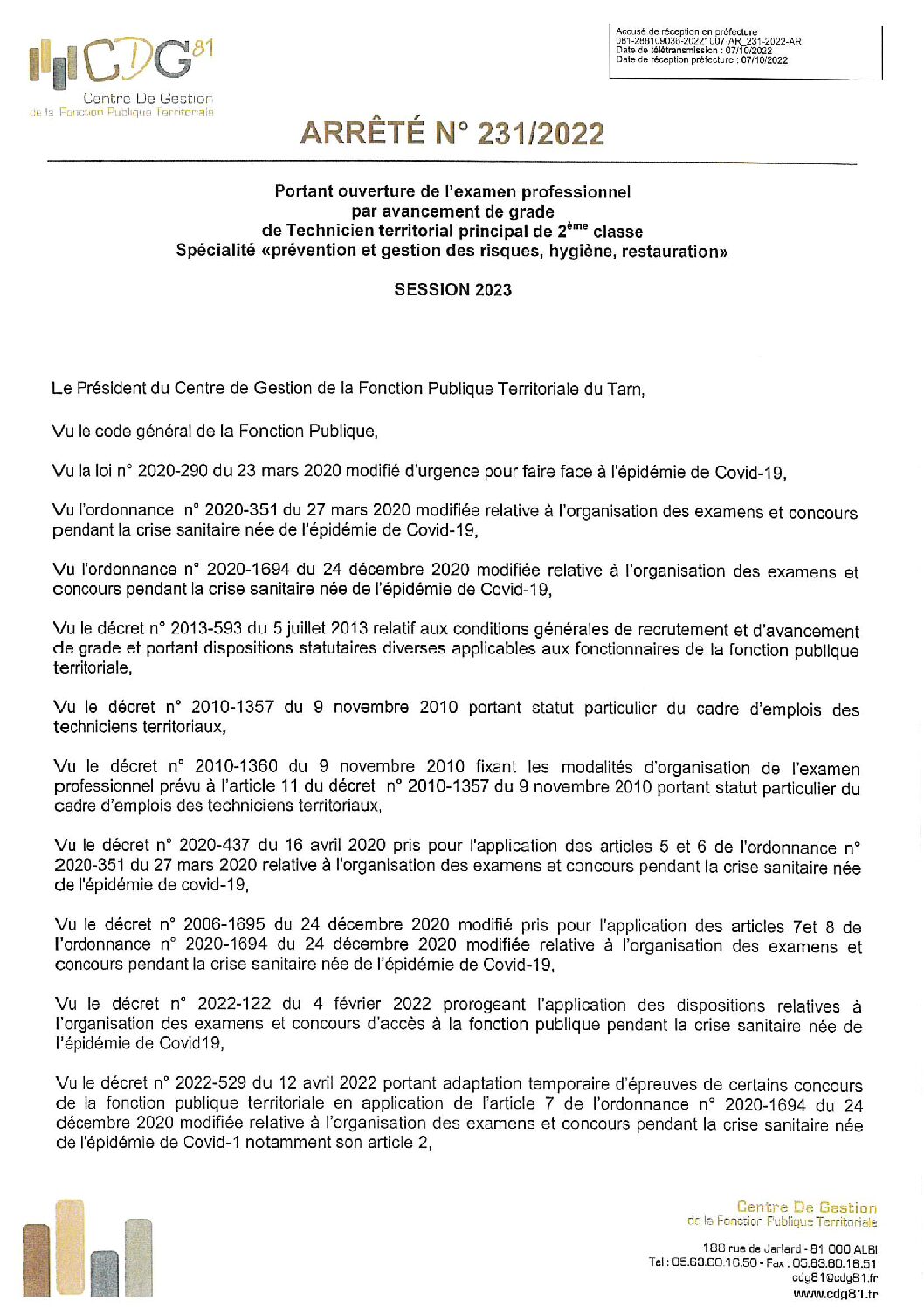 Voir l'image agrandie Arrêté : ouverture examen technicien principal 2e classe PI (2023) Arrêté : ouverture examen technicien principal 2e classe PI (2023) Type de fichier : pdf File Size: 1 004 Ko Catégories: 2022 Balises : 2023, examen, PI, promotion interne, session 2023, technicien, technicien principal, technicien principal 2e classe Par Thomas|2025-12-09T17:52:44+01:0009/12/2025|Commentaires fermés sur Arrêté : ouverture examen technicien principal 2e classe PI (2023) Share This Story, Choose Your Platform! FacebookXRedditLinkedInWhatsAppTelegramTumblrPinterestVkXingEmail À propos de l'auteur : Thomas