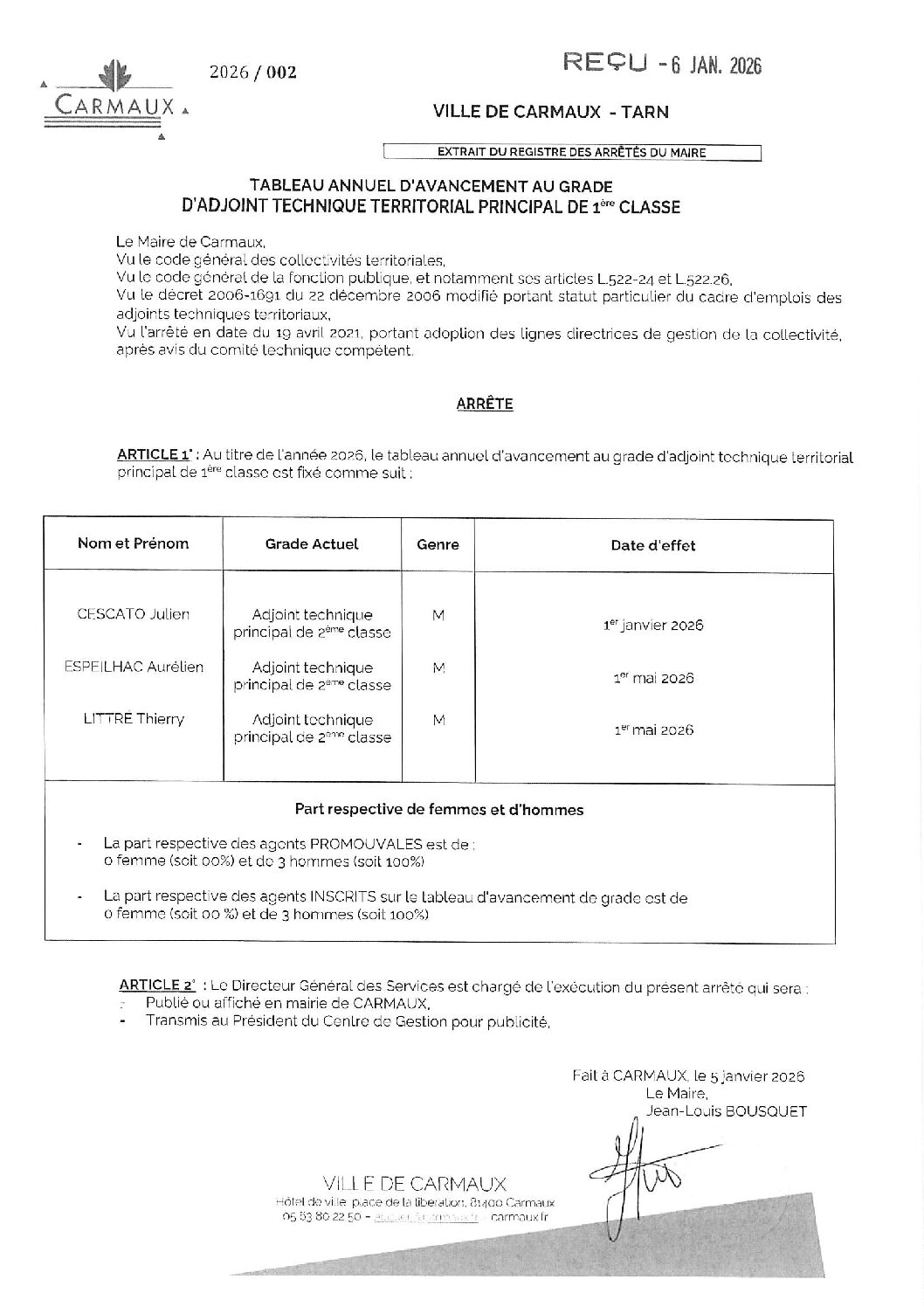 Voir l'image agrandie Av. de grade 2026 : Carmaux Type de fichier : pdf File Size: 1 Mo Catégories: Avancement de grade (tableaux annuels) Balises : annuel, arrêté, avancement, grade, tableau Par Syvie Mazars|2026-01-29T16:35:46+01:0006/01/2026|Commentaires fermés sur Av. de grade 2026 : Carmaux Share This Story, Choose Your Platform! FacebookXRedditLinkedInWhatsAppTelegramTumblrPinterestVkXingEmail À propos de l'auteur : Syvie Mazars