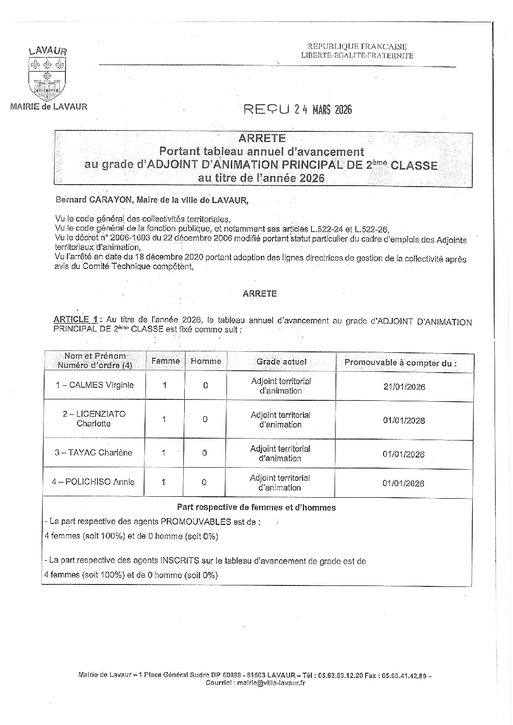 Voir l'image agrandie Av. de grade 2026 : Lavaur Type de fichier : pdf File Size: 1 Mo Catégories: Avancement de grade (tableaux annuels) Balises : annuel, arrêté, avancement, grade, tableauPar Aurélie CHABBERT|2026-03-24T14:45:18+01:0024/03/2026|Commentaires fermés sur Av. de grade 2026 : LavaurShare This Story, Choose Your Platform!FacebookXRedditLinkedInWhatsAppTelegramTumblrPinterestVkXingEmail À propos de l'auteur : Aurélie CHABBERT