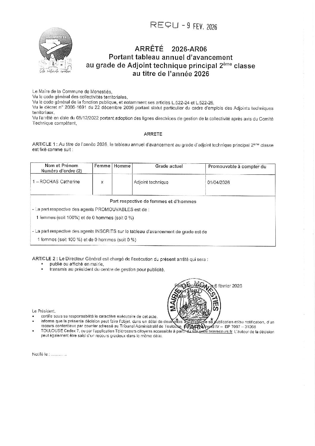 Voir l'image agrandie Av. de grade 2026 : Monestiés Type de fichier : pdf File Size: 230 Ko Catégories: Avancement de grade (tableaux annuels) Balises : annuel, arrêté, avancement, grade, tableau Par Aurélie CHABBERT|2026-02-10T09:20:45+01:0010/02/2026|Commentaires fermés sur Av. de grade 2026 : Monestiés Share This Story, Choose Your Platform! FacebookXRedditLinkedInWhatsAppTelegramTumblrPinterestVkXingEmail À propos de l'auteur : Aurélie CHABBERT