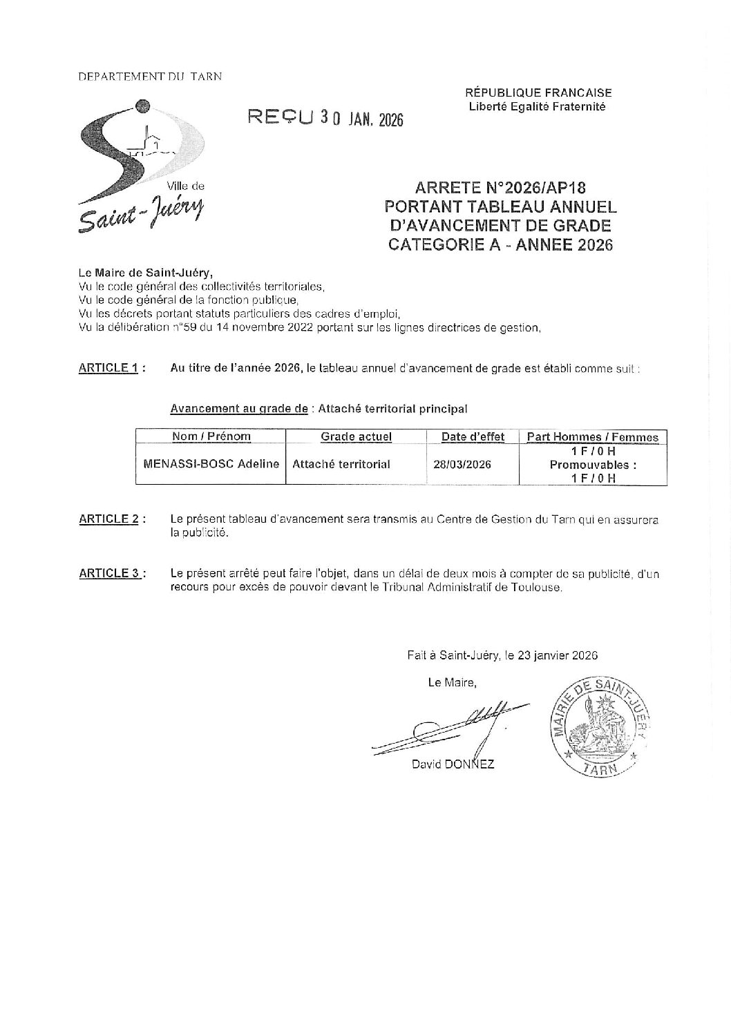 Voir l'image agrandie Av. de grade 2026 : Saint-Juery Type de fichier : pdf File Size: 559 Ko Catégories: Avancement de grade (tableaux annuels) Balises : annuel, arrêté, avancement, grade, tableau Par Aurélie CHABBERT|2026-01-30T11:31:53+01:0030/01/2026|Commentaires fermés sur Av. de grade 2026 : Saint-Juery Share This Story, Choose Your Platform! FacebookXRedditLinkedInWhatsAppTelegramTumblrPinterestVkXingEmail À propos de l'auteur : Aurélie CHABBERT