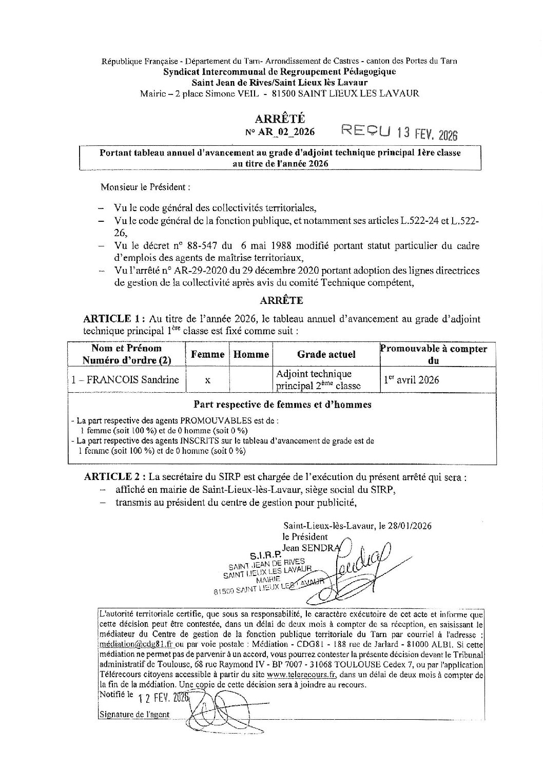 Voir l'image agrandie Av. de grade 2026 : Saint-Lieux-Les-Lavaur Type de fichier : pdf File Size: 365 Ko Catégories: Avancement de grade (tableaux annuels) Balises : annuel, arrêté, avancement, grade, tableau Par Aurélie CHABBERT|2026-02-16T09:50:17+01:0016/02/2026|Commentaires fermés sur Av. de grade 2026 : Saint-Lieux-Les-Lavaur Share This Story, Choose Your Platform! FacebookXRedditLinkedInWhatsAppTelegramTumblrPinterestVkXingEmail À propos de l'auteur : Aurélie CHABBERT