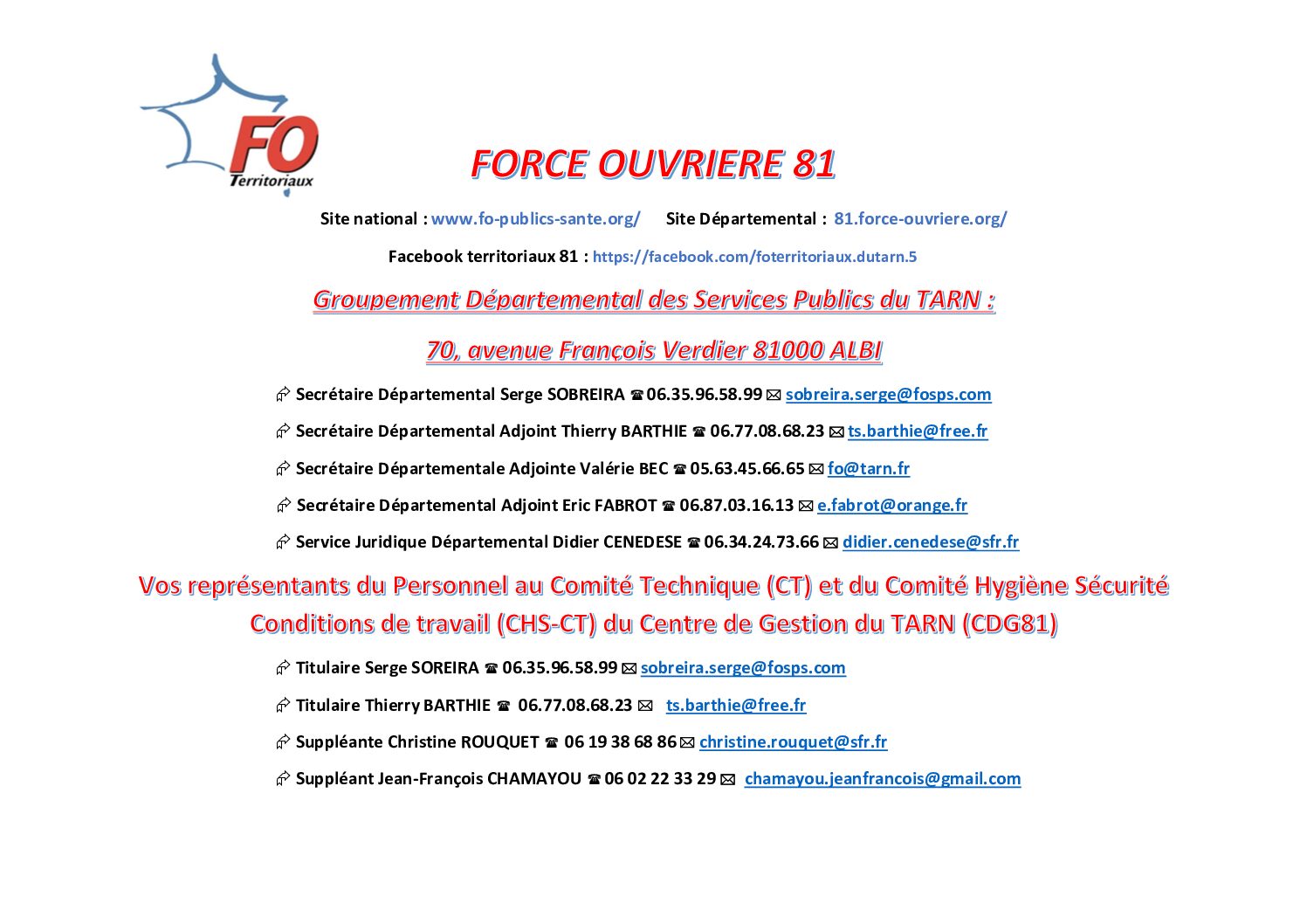 Voir l'image agrandie Coordonnées du syndicat FO Coordonnées du syndicat FO Type de fichier : pdf File Size: 1 Mo Catégories: Coordonnées des syndicats Balises : Coordonnées, FO, syndicat Par Thomas|2025-12-09T17:49:31+01:0009/12/2025|Commentaires fermés sur Coordonnées du syndicat FO Share This Story, Choose Your Platform! FacebookXRedditLinkedInWhatsAppTelegramTumblrPinterestVkXingEmail À propos de l'auteur : Thomas