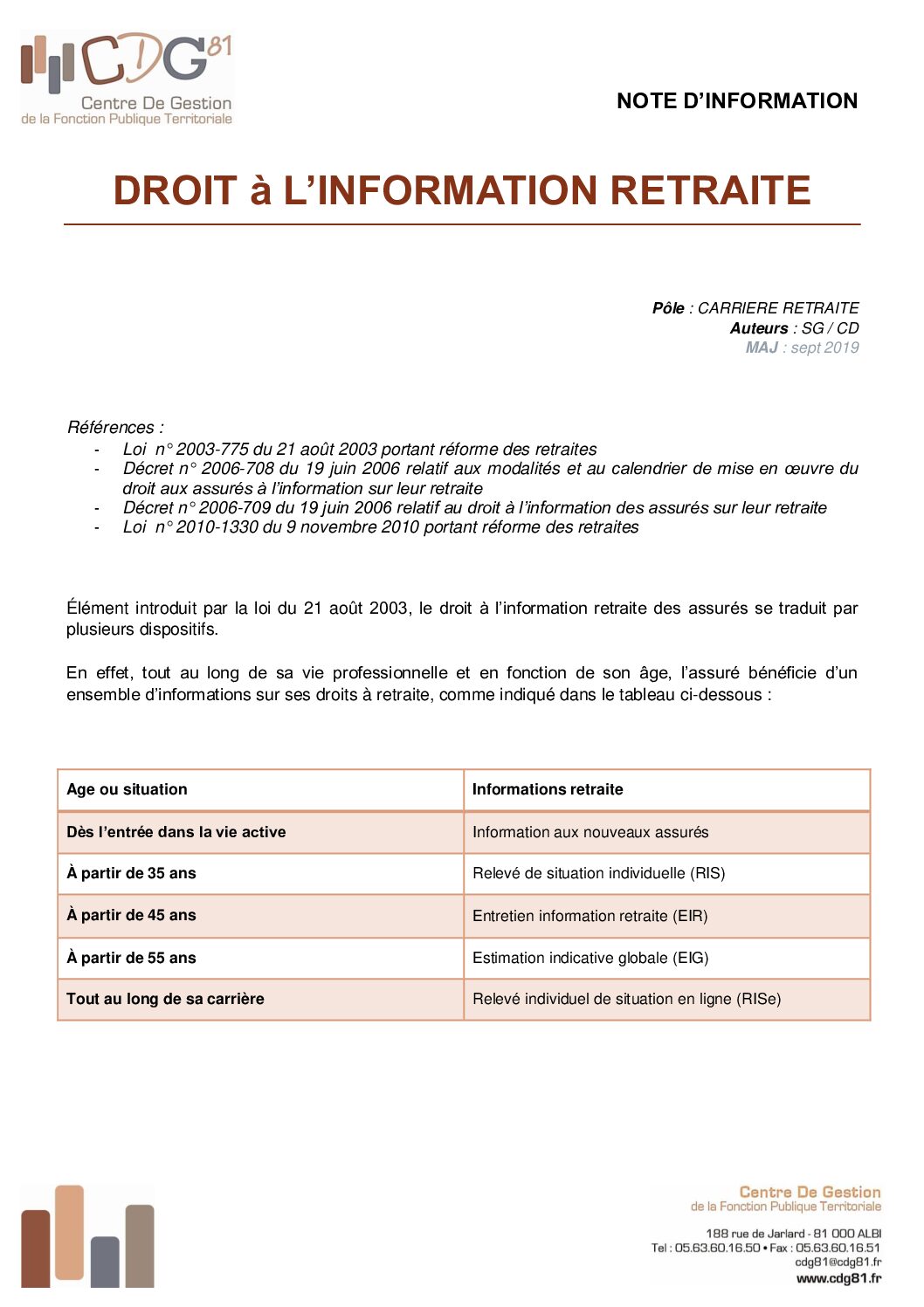 Voir l'image agrandie Droit à l’information Retraite – note d’information Note d’information présentant le droit à l’information retraite Type de fichier : pdf File Size: 382 Ko Catégories: Droit à l information Balises : calendrier, cohortes, droit l'information, retraite Par Thomas|2025-12-09T17:49:44+01:0009/12/2025|Commentaires fermés sur Droit à l’information Retraite – note d’information Share This Story, Choose Your Platform! FacebookXRedditLinkedInWhatsAppTelegramTumblrPinterestVkXingEmail À propos de l'auteur : Thomas