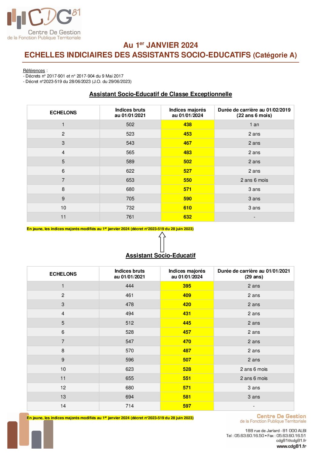 Voir l'image agrandie Echelle indiciaire (catégorie A) : assistant socio-éducatif Janvier 2024 Echelle indiciaire Catégorie A – assistant socio-éducatif Janvier 2024 Type de fichier : pdf File Size: 57 Ko Catégories: Catégorie A Balises : échelle, échelon, grille, indices, indiciaire Par Thomas|2025-12-09T17:53:44+01:0009/12/2025|Commentaires fermés sur Echelle indiciaire (catégorie A) : assistant socio-éducatif Janvier 2024 Share This Story, Choose Your Platform! FacebookXRedditLinkedInWhatsAppTelegramTumblrPinterestVkXingEmail À propos de l'auteur : Thomas