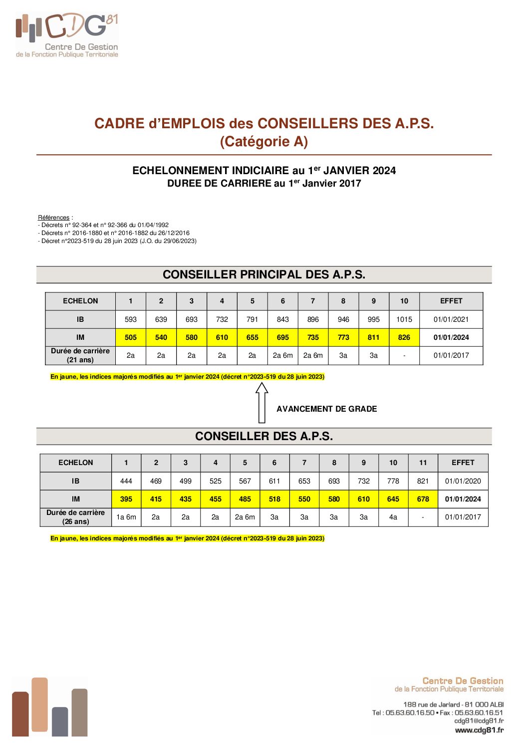 Voir l'image agrandie Echelle indiciaire (catégorie A) : conseiller des A.P.S. Janvier 2024 Echelle indiciaire Catégorie A – conseiller des A.P.S. Janvier 2024 Type de fichier : pdf File Size: 86 Ko Catégories: Catégorie A Balises : échelle, échelon, grille, indices, indiciaire Par Thomas|2025-12-09T17:53:51+01:0009/12/2025|Commentaires fermés sur Echelle indiciaire (catégorie A) : conseiller des A.P.S. Janvier 2024 Share This Story, Choose Your Platform! FacebookXRedditLinkedInWhatsAppTelegramTumblrPinterestVkXingEmail À propos de l'auteur : Thomas