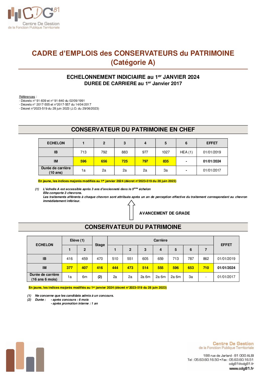 Voir l'image agrandie Echelle indiciaire (catégorie A) : conservateur du patrimoine Janvier 2024 Echelle indiciaire Catégorie A – conservateur du patrimoine Janvier 2024 Type de fichier : pdf File Size: 123 Ko Catégories: Catégorie A Balises : échelle, échelon, grille, indices, indiciaire Par Thomas|2025-12-09T17:53:55+01:0009/12/2025|Commentaires fermés sur Echelle indiciaire (catégorie A) : conservateur du patrimoine Janvier 2024 Share This Story, Choose Your Platform! FacebookXRedditLinkedInWhatsAppTelegramTumblrPinterestVkXingEmail À propos de l'auteur : Thomas