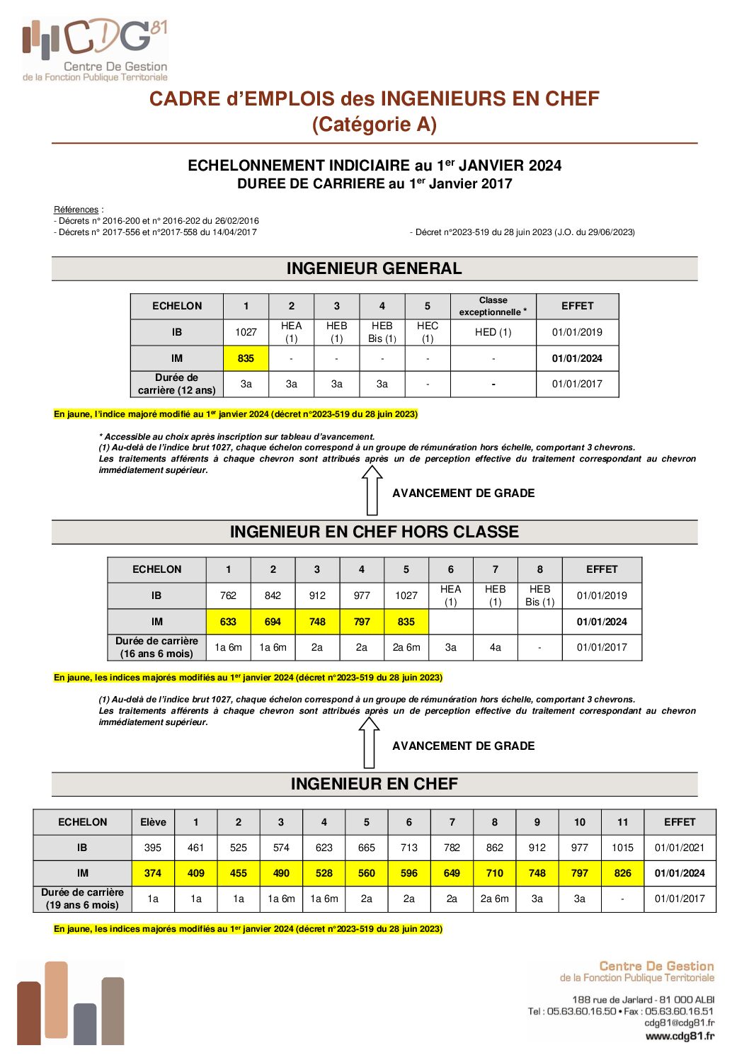 Voir l'image agrandie Echelle indiciaire (catégorie A) : ingénieur en chef Janvier 2024 Echelle indiciaire Catégorie A – ingénieur en chef Janvier 2024 Type de fichier : pdf File Size: 131 Ko Catégories: Catégorie A Balises : échelle, échelon, grille, indices, indiciaire Par Thomas|2025-12-09T17:54:03+01:0009/12/2025|Commentaires fermés sur Echelle indiciaire (catégorie A) : ingénieur en chef Janvier 2024 Share This Story, Choose Your Platform! FacebookXRedditLinkedInWhatsAppTelegramTumblrPinterestVkXingEmail À propos de l'auteur : Thomas