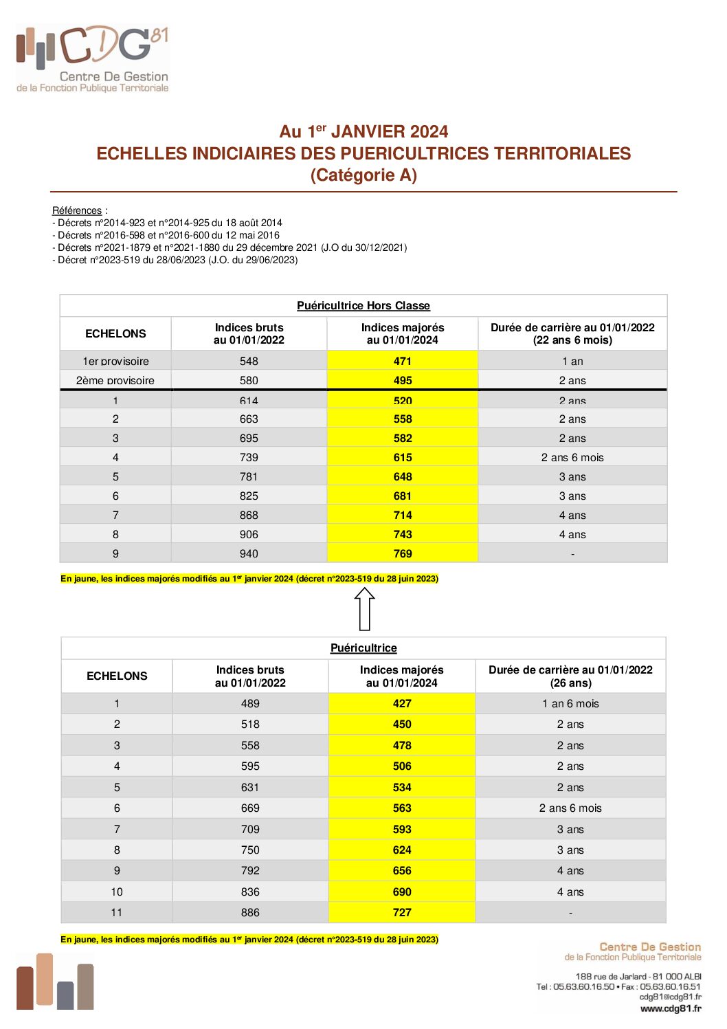 Voir l'image agrandie Echelle indiciaire (catégorie A) : puéricultrice Janvier 2024 Echelle indiciaire Catégorie A – puéricultrice Janvier 2024 Type de fichier : pdf File Size: 53 Ko Catégories: Catégorie A Balises : échelle, échelon, grille, indices, indiciaire Par Thomas|2025-12-09T17:54:09+01:0009/12/2025|Commentaires fermés sur Echelle indiciaire (catégorie A) : puéricultrice Janvier 2024 Share This Story, Choose Your Platform! FacebookXRedditLinkedInWhatsAppTelegramTumblrPinterestVkXingEmail À propos de l'auteur : Thomas