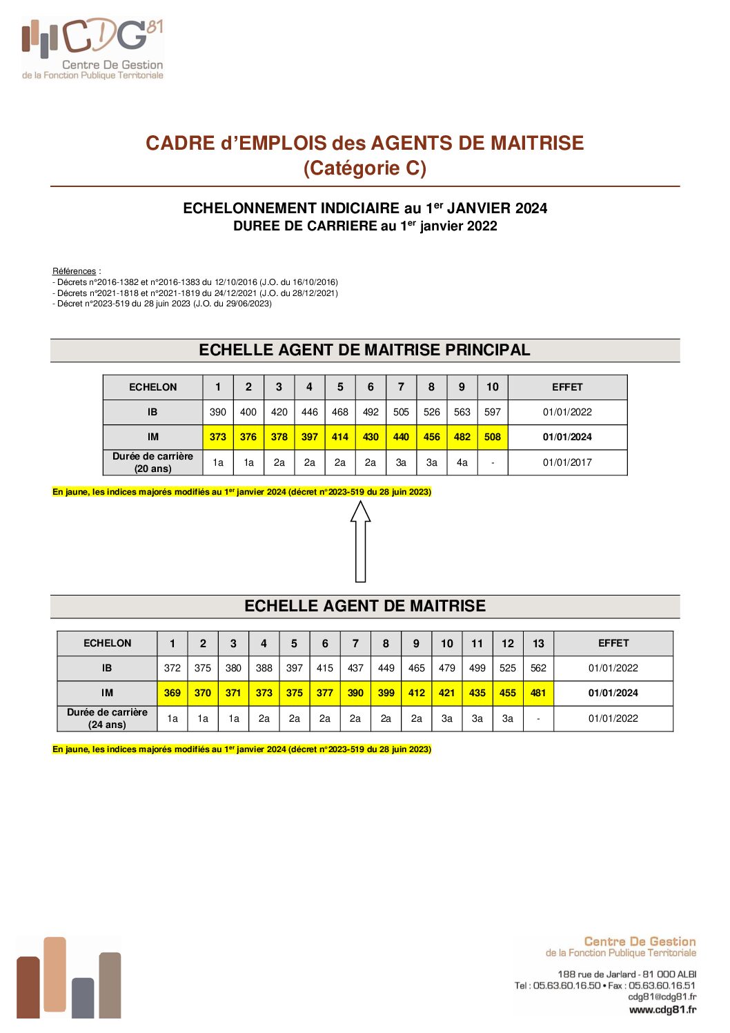 Voir l'image agrandie Echelle indiciaire (catégorie C) : agent de maîtrise Janvier 2024 Echelle indiciaire Catégorie C – agent de maîtrise Janvier 2024 Type de fichier : pdf File Size: 87 Ko Catégories: Catégorie C Balises : échelle, échelon, grille, indices, indiciaire Par Thomas|2025-12-09T17:54:21+01:0009/12/2025|Commentaires fermés sur Echelle indiciaire (catégorie C) : agent de maîtrise Janvier 2024 Share This Story, Choose Your Platform! FacebookXRedditLinkedInWhatsAppTelegramTumblrPinterestVkXingEmail À propos de l'auteur : Thomas