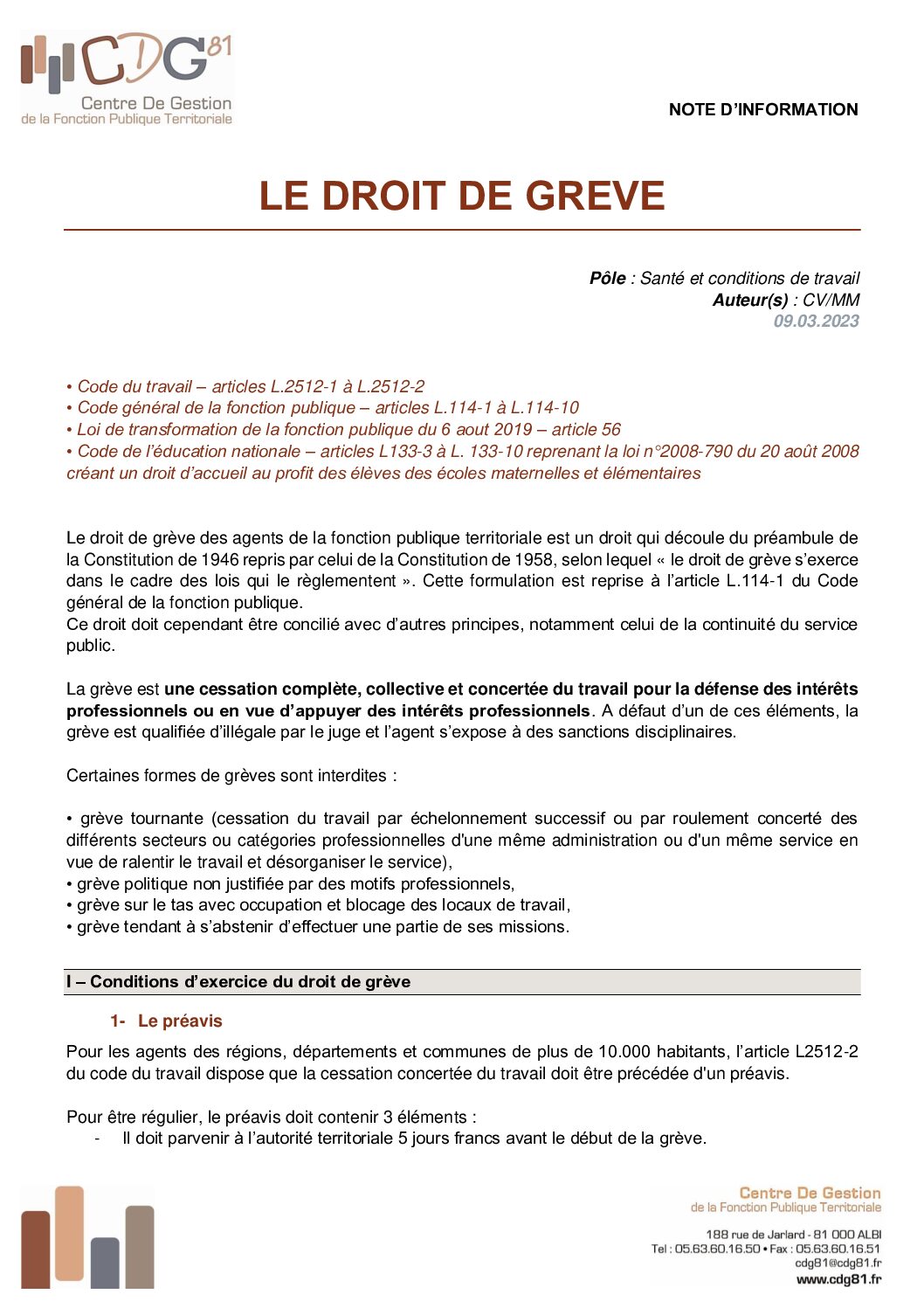 Voir l'image agrandie Le droit de grève Note d’information sur le droit de grève dans la fonction publique territoriale Type de fichier : pdf File Size: 223 Ko Catégories: Temps de travail Balises : droit de grève, temps de travail Par Thomas|2025-12-09T17:53:13+01:0009/12/2025|Commentaires fermés sur Le droit de grève Share This Story, Choose Your Platform! FacebookXRedditLinkedInWhatsAppTelegramTumblrPinterestVkXingEmail À propos de l'auteur : Thomas