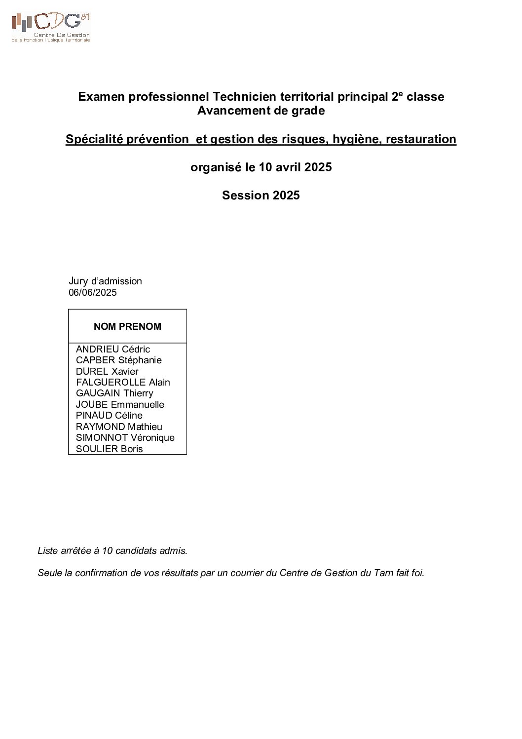 Voir l'image agrandie Liste candidats admis examen professionnel technicien pl 2e cl AG (2025) Liste candidats admis examen professionnel technicien principal 2e cl AG Type de fichier : pdf File Size: 799 Ko Catégories: Liste de réussite - examen professionnel Balises : 2025, avancement de grade, examen, technicien, technicien principal Par Thomas|2025-12-09T17:59:34+01:0009/12/2025|Commentaires fermés sur Liste candidats admis examen professionnel technicien pl 2e cl AG (2025) Share This Story, Choose Your Platform! FacebookXRedditLinkedInWhatsAppTelegramTumblrPinterestVkXingEmail À propos de l'auteur : Thomas