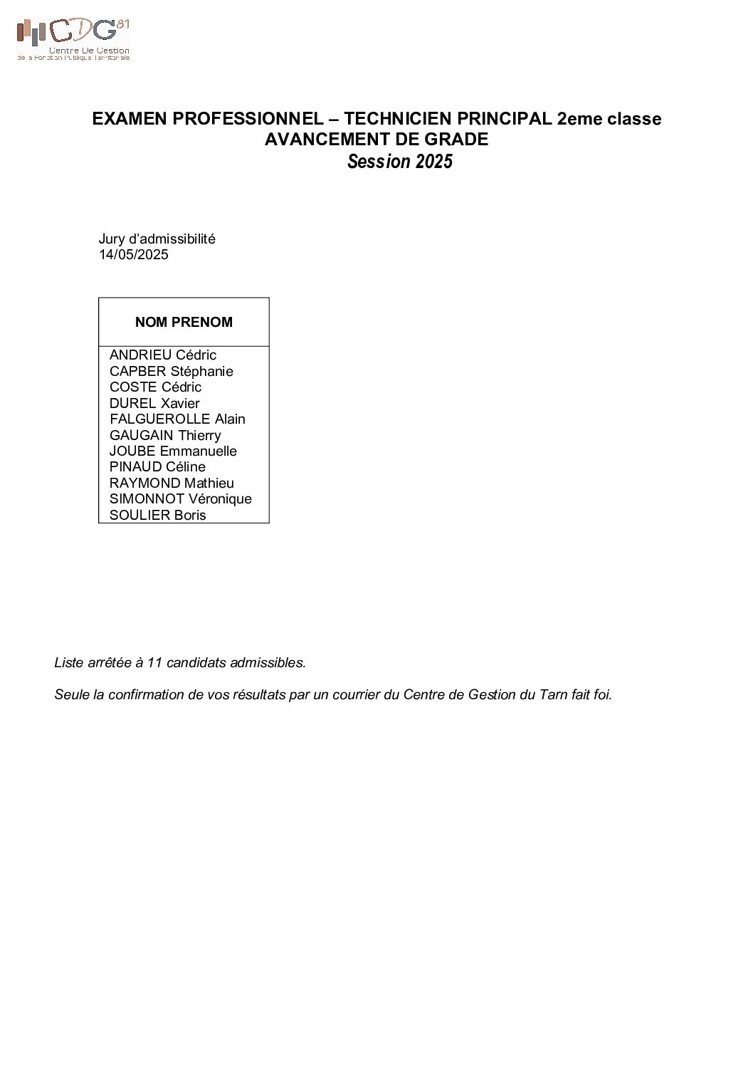 Voir l'image agrandie Liste candidats admissibles technicien principal 2e classe AG Liste candidats admissibles technicien principal 2e classe AG 2025 Type de fichier : pdf File Size: 739 Ko Catégories: Résultats Balises : 2025, admissibilité, examen, résultats, technicien principal Par Thomas|2025-12-09T17:59:07+01:0009/12/2025|Commentaires fermés sur Liste candidats admissibles technicien principal 2e classe AG Share This Story, Choose Your Platform! FacebookXRedditLinkedInWhatsAppTelegramTumblrPinterestVkXingEmail À propos de l'auteur : Thomas