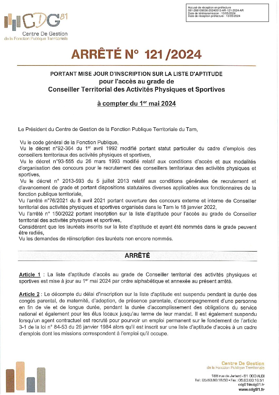 Liste d’aptitude : arrêté portant mise à jour liste d’aptitude (session 2022) CTAPS (