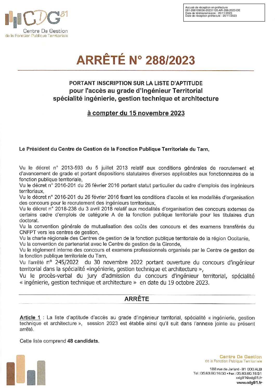 Voir l'image agrandie Liste d’aptitude : concours ingénieur territorial, spécialité IGTA (2023) Liste d’aptitude : concours ingénieur territorial (session 2023) Type de fichier : pdf File Size: 787 Ko Catégories: 2023 Balises : 2023, arrêté, ingénieur, ingénieur territorial, liste d'aptitude, session 2023 Par Thomas|2025-12-09T17:53:41+01:0009/12/2025|Commentaires fermés sur Liste d’aptitude : concours ingénieur territorial, spécialité IGTA (2023) Share This Story, Choose Your Platform! FacebookXRedditLinkedInWhatsAppTelegramTumblrPinterestVkXingEmail À propos de l'auteur : Thomas
