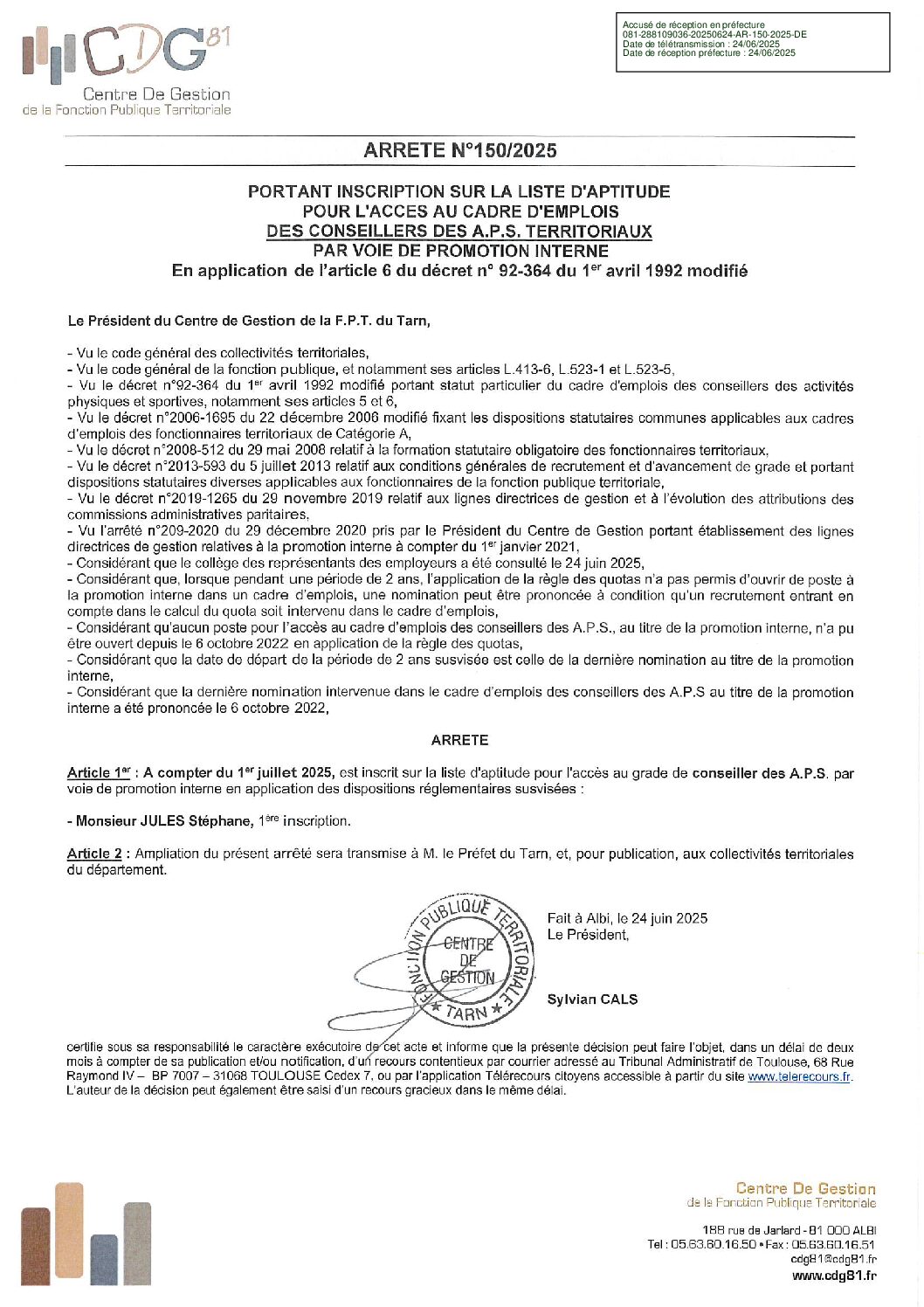 Voir l'image agrandie Liste d’aptitude promotion interne : conseiller des APS (juillet 2025) Liste d’aptitude promotion interne conseiller des APS – Juillet 2025 Type de fichier : pdf File Size: 393 Ko Catégories: Listes aptitude suite à promotion interne Balises : aptitude, arrêté, interne, liste, promotion Par Thomas|2025-12-09T18:00:10+01:0009/12/2025|Commentaires fermés sur Liste d’aptitude promotion interne : conseiller des APS (juillet 2025) Share This Story, Choose Your Platform! FacebookXRedditLinkedInWhatsAppTelegramTumblrPinterestVkXingEmail À propos de l'auteur : Thomas