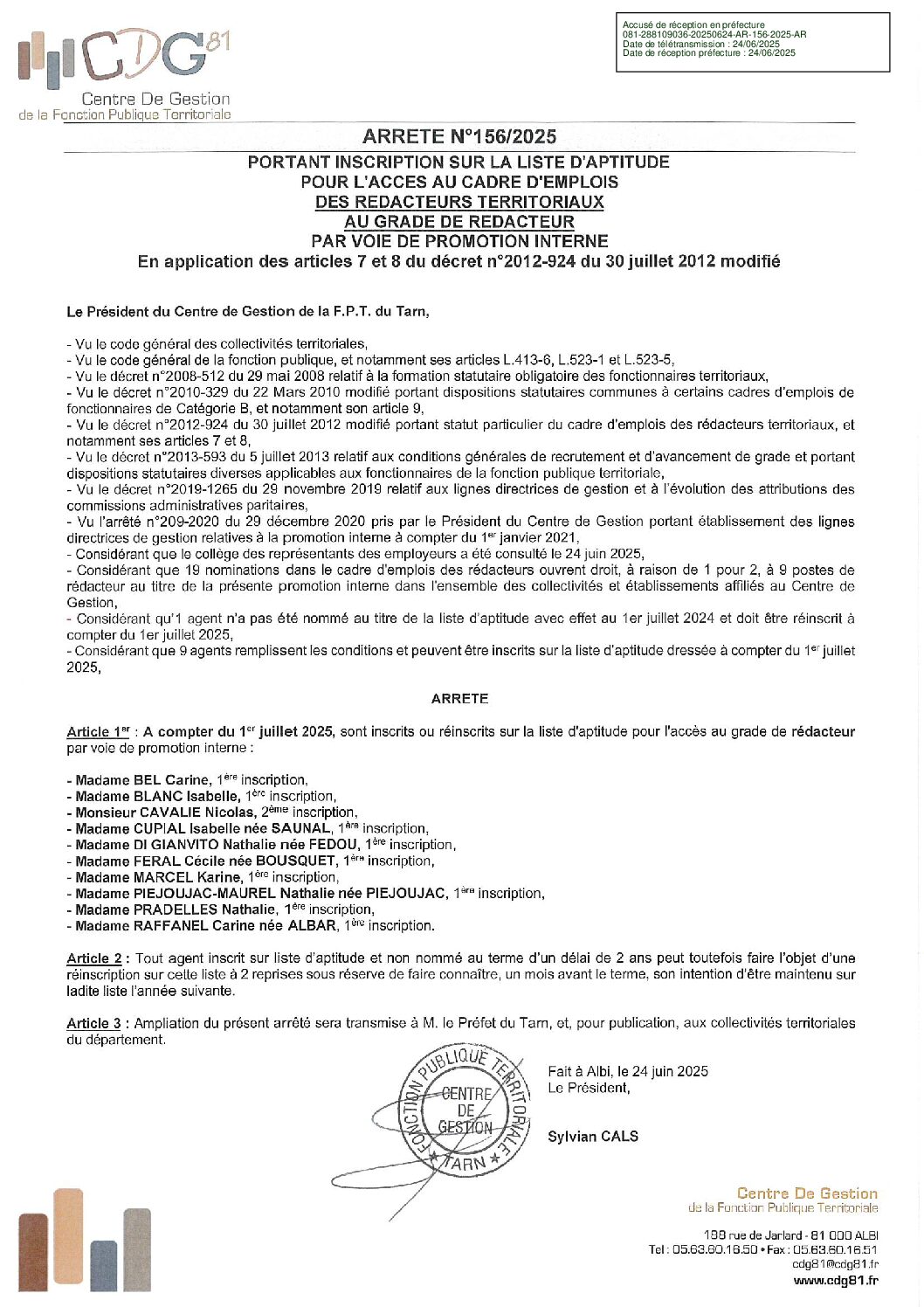 Voir l'image agrandie Liste d’aptitude promotion interne : rédacteur (juillet 2025) Liste d’aptitude promotion interne rédacteur – Juillet 2025 Type de fichier : pdf File Size: 457 Ko Catégories: Listes aptitude suite à promotion interne Balises : aptitude, arrêté, interne, liste, promotion Par Thomas|2025-12-09T18:00:02+01:0009/12/2025|Commentaires fermés sur Liste d’aptitude promotion interne : rédacteur (juillet 2025) Share This Story, Choose Your Platform! FacebookXRedditLinkedInWhatsAppTelegramTumblrPinterestVkXingEmail À propos de l'auteur : Thomas