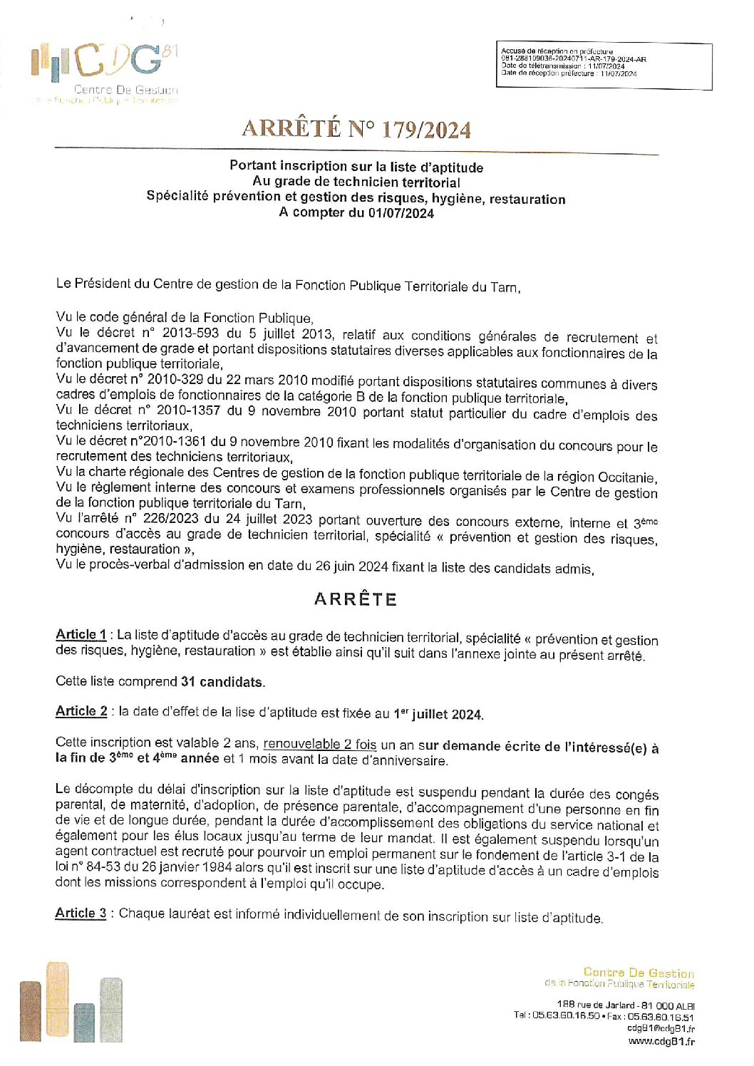 Voir l'image agrandie Liste d’aptitude : technicien territorial (session 2024) Liste d’aptitude : technicien territorial (session 2024) Type de fichier : pdf File Size: 640 Ko Catégories: Technicien territorial session 2024 Balises : 2024, Liste d'aptitude 2024, session 2024, technicien, technicien territorial Par Thomas|2025-12-09T17:55:09+01:0009/12/2025|Commentaires fermés sur Liste d’aptitude : technicien territorial (session 2024) Share This Story, Choose Your Platform! FacebookXRedditLinkedInWhatsAppTelegramTumblrPinterestVkXingEmail À propos de l'auteur : Thomas