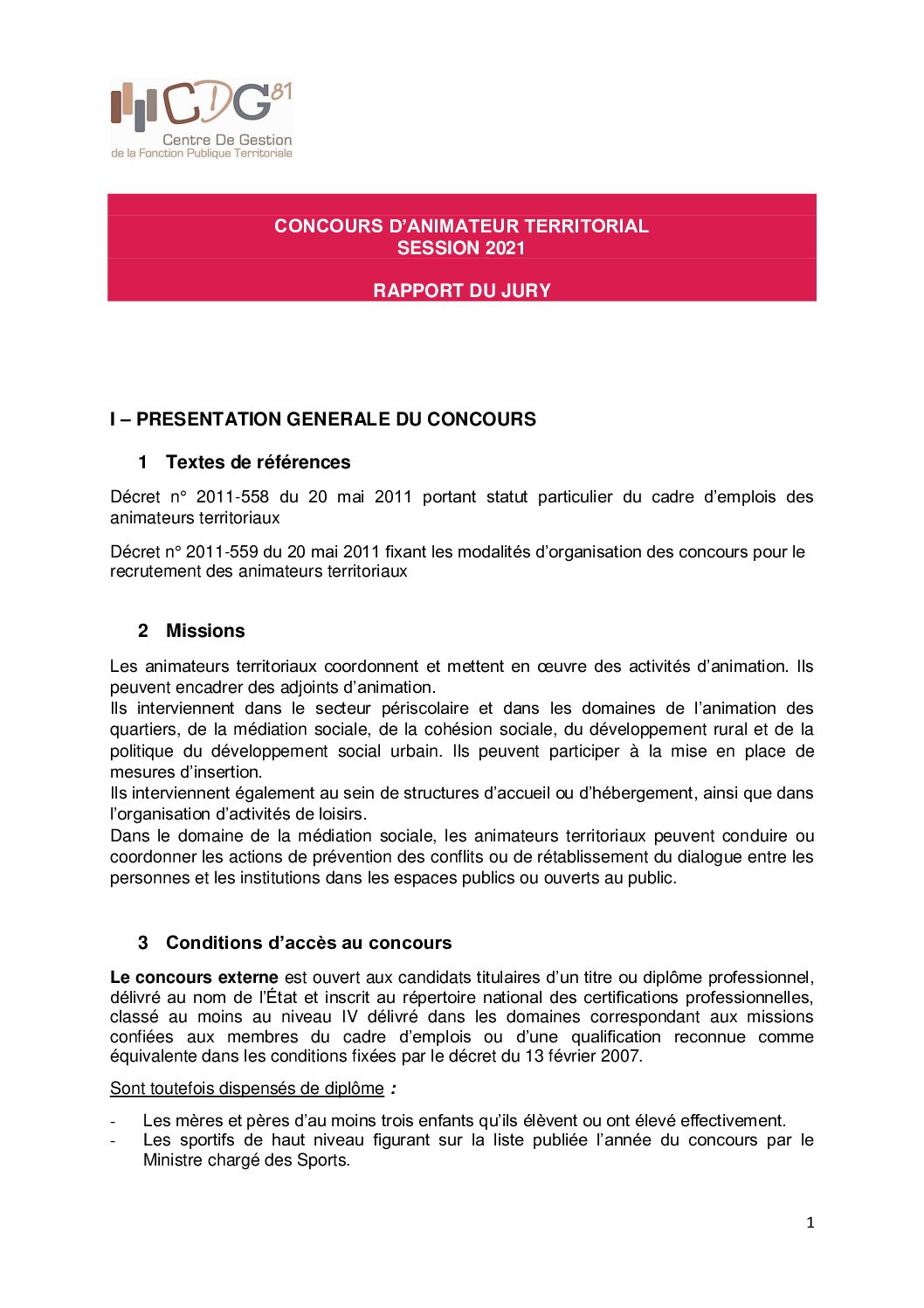 Voir l'image agrandie Rapport du jury : concours d’animateur (session 2021) Rapport du jury : concours d’animateur (session 2021) Type de fichier : pdf File Size: 479 Ko Catégories: Rapports de jury Balises : 2021, animateur, rapport du jury, session 2021 Par Thomas|2025-12-09T17:54:40+01:0009/12/2025|Commentaires fermés sur Rapport du jury : concours d’animateur (session 2021) Share This Story, Choose Your Platform! FacebookXRedditLinkedInWhatsAppTelegramTumblrPinterestVkXingEmail À propos de l'auteur : Thomas