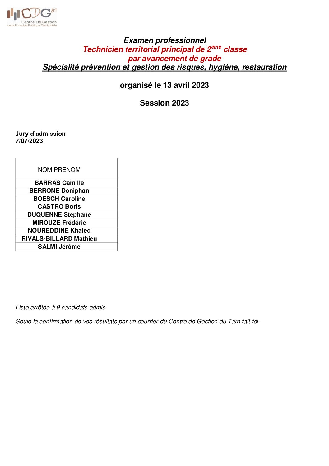 Voir l'image agrandie Résultat d’admission : examen technicien principal 2ème classe AG – session 2023 Résultat : examen technicien principal 2ème classe AG (admission 2023) Type de fichier : pdf File Size: 277 Ko Catégories: Liste de réussite - examen professionnel Balises : 2023, résultat, résultat admission, session 2023, technicien, technicien principal Par Thomas|2025-12-09T17:53:27+01:0009/12/2025|Commentaires fermés sur Résultat d’admission : examen technicien principal 2ème classe AG – session 2023 Share This Story, Choose Your Platform! FacebookXRedditLinkedInWhatsAppTelegramTumblrPinterestVkXingEmail À propos de l'auteur : Thomas
