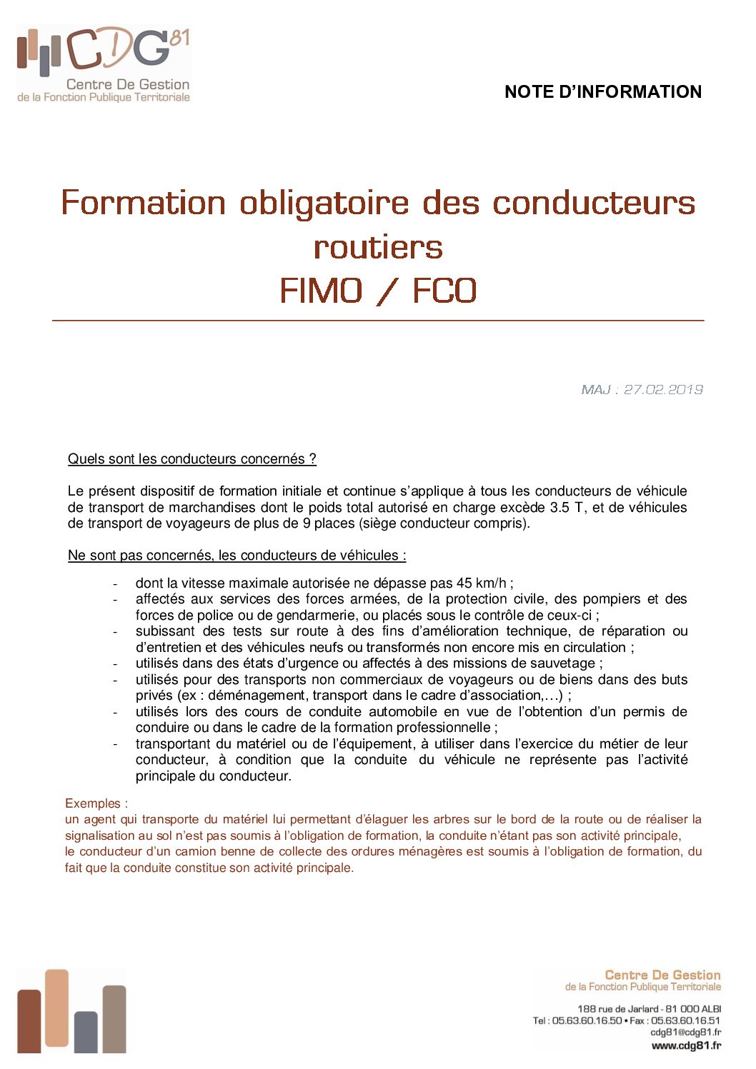 Voir l'image agrandie Risque pro. : note d’information sur la formation obligatoire des conducteurs routiers Note explicative sur la formation obligatoire des conducteurs routiers Type de fichier : pdf File Size: 306 Ko Catégories: Prévention des risques professionnels Balises : conducteurs routiers, fco, fimo, formation obligatoire Par Thomas|2025-12-09T17:49:01+01:0009/12/2025|Commentaires fermés sur Risque pro. : note d’information sur la formation obligatoire des conducteurs routiers Share This Story, Choose Your Platform! FacebookXRedditLinkedInWhatsAppTelegramTumblrPinterestVkXingEmail À propos de l'auteur : Thomas