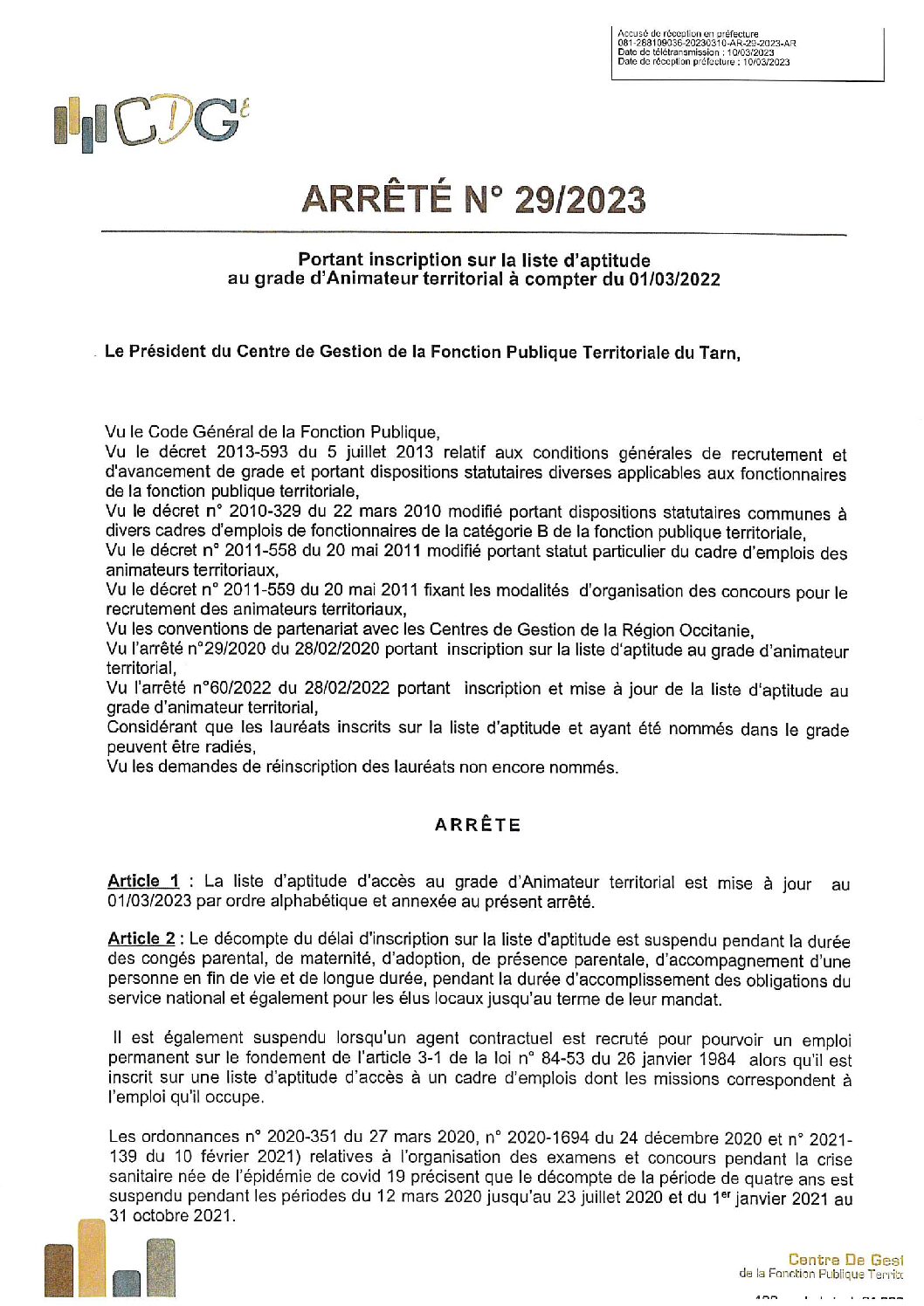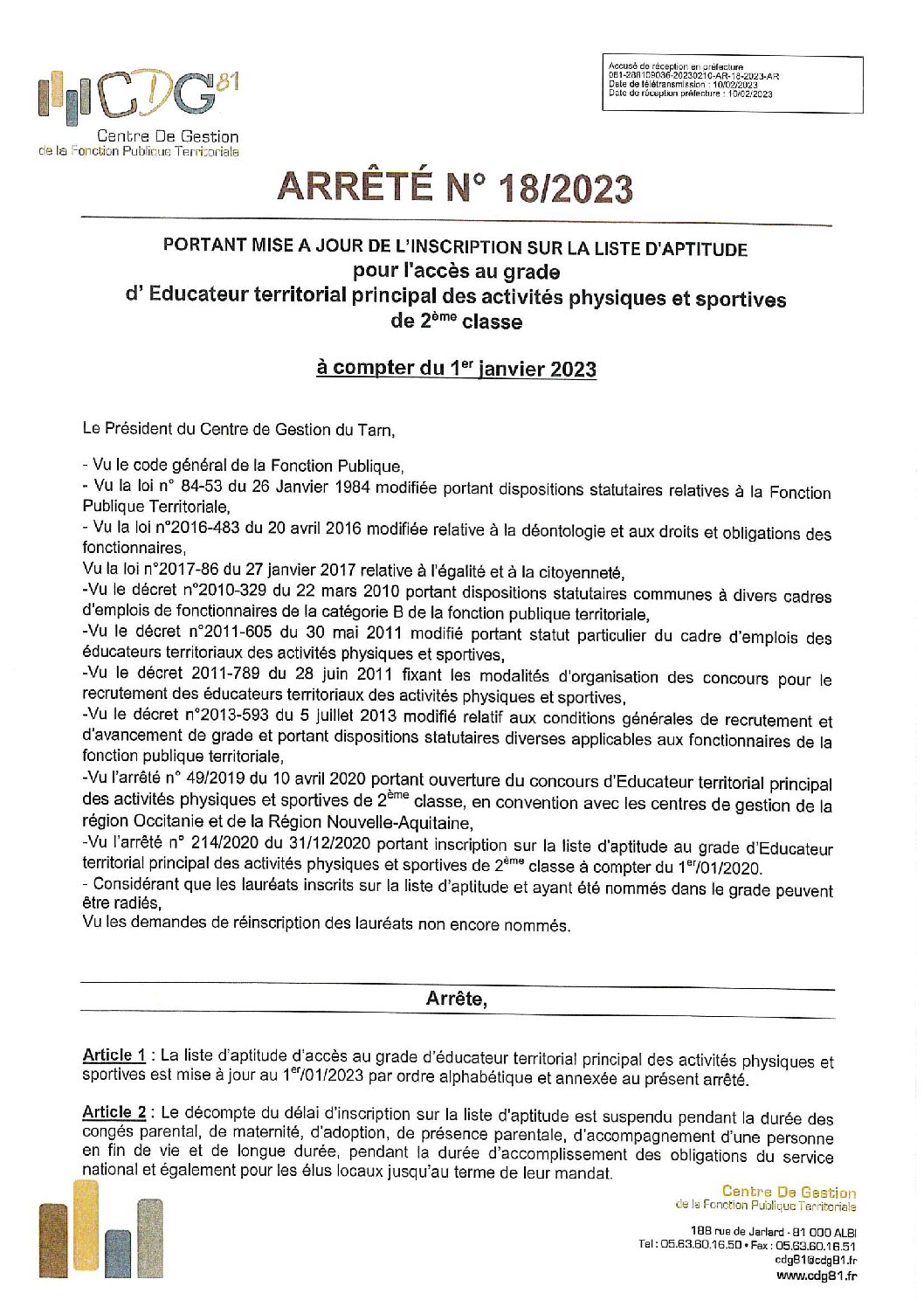 Etaps principal 2ème classe session 2020