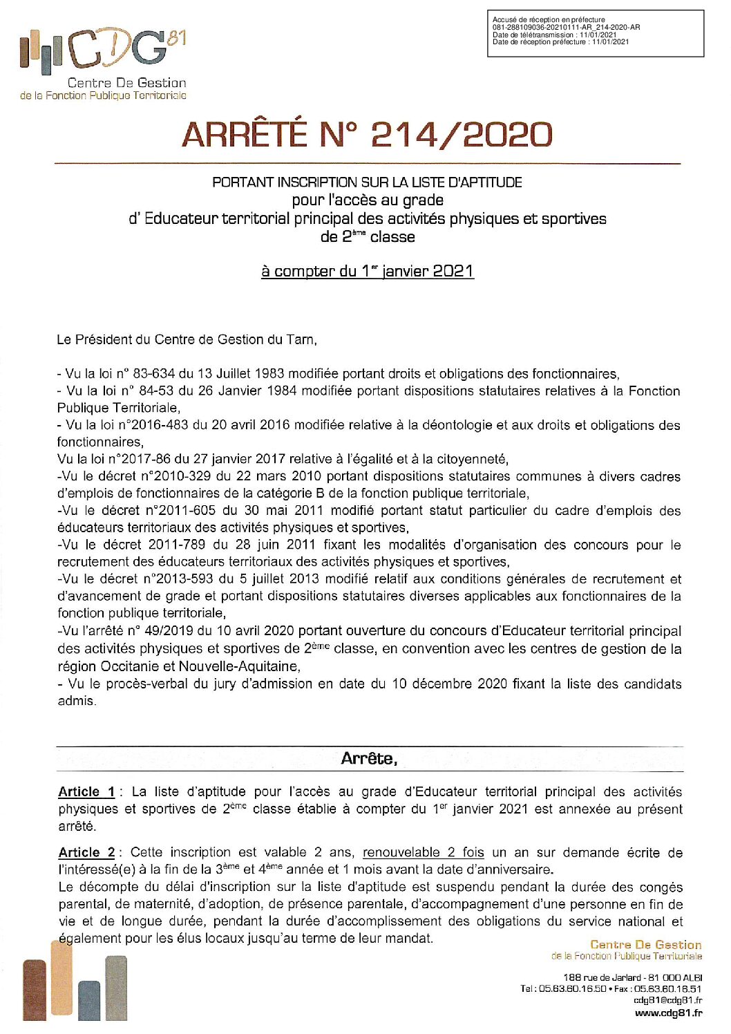 Etaps principal 2ème classe session 2020